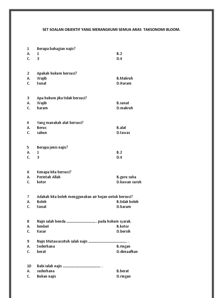 10 Soalan Objektif Berdasarkan Aras Taksonomi Bloom Pdf