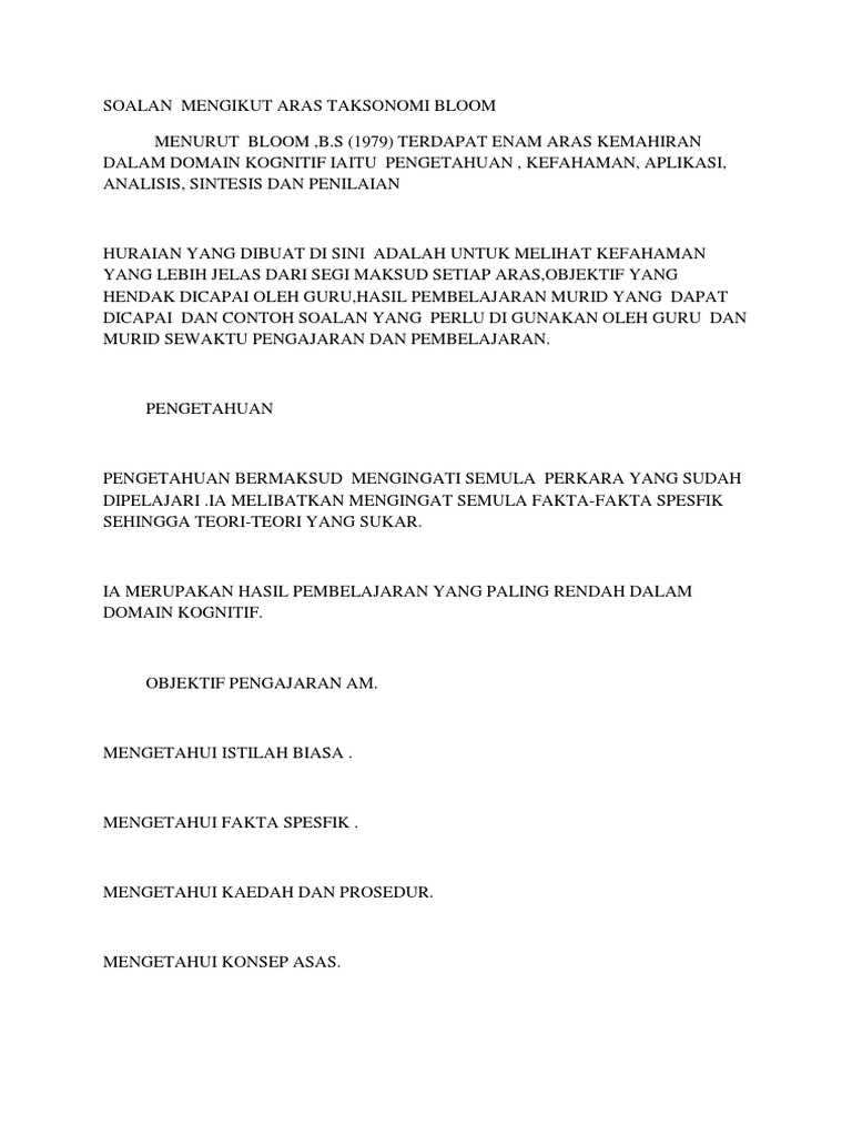 Soalan Mengikut Aras Taksonomi Bloom Pdf